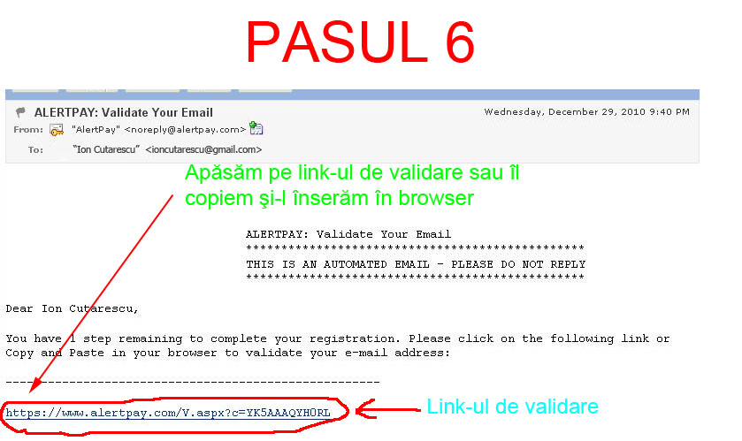 deschidem şi apăsăm pe link-ul de validare sau îl copiem şi îl înserăm